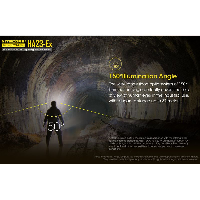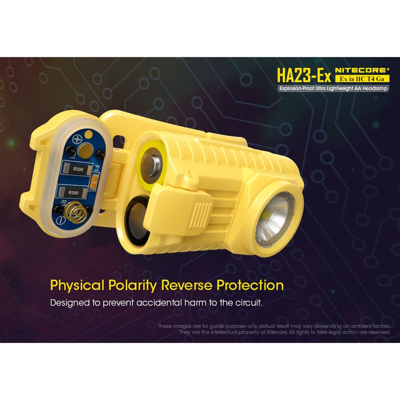Possui certificação de proteção Ex ia IIC T6 Ga, assegurando operação segura em zonas classificadas. Equipada com LED CREE XP-G, entrega feixe amplo e uniforme, graças à lente óptica refletiva de superfície esférica. Alimentada por 2 pilhas AA, oferece autonomia de até 130h, com intensidade de 350 candelas e alcance máximo de 37m.
