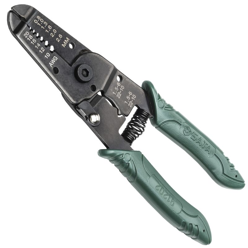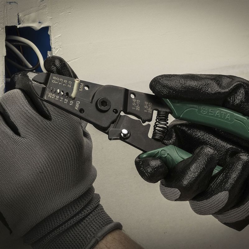 O Alicate Descascador de Fios 7'' Sata possui design preciso da lâmina, que evita danos nos fios condutores e seu mecanismo de mola beneficia a armazenagem.
