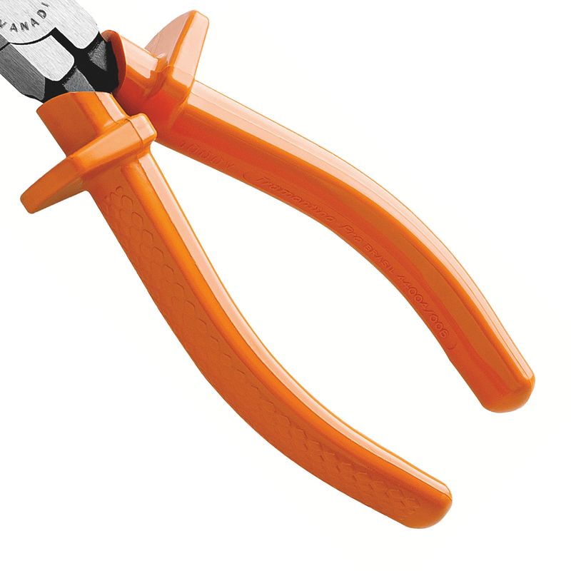 O Alicate Meia Cana Isolado 6'' Bico Reto Tramontina Pro é ideal para cortar, prender e dobrar cabos e arames. Muito utilizado em trabalhos de telefonia.