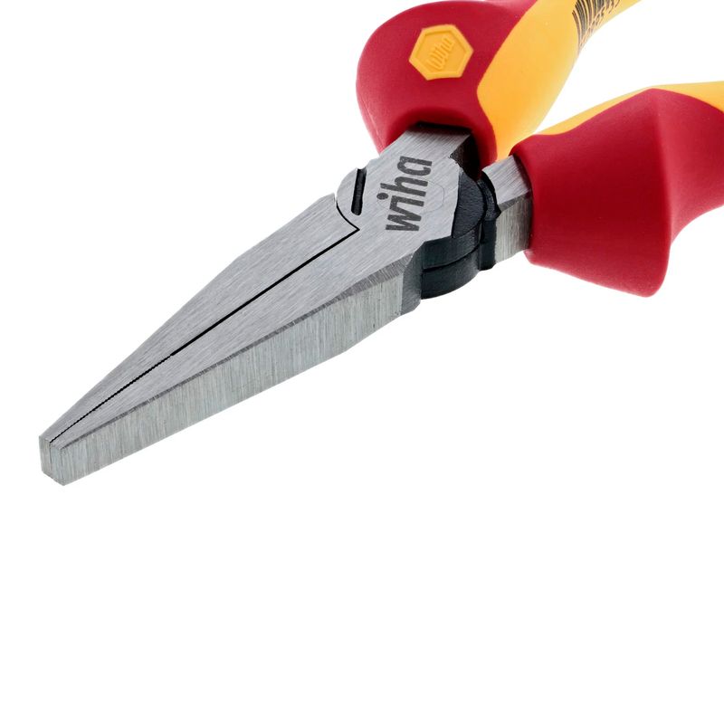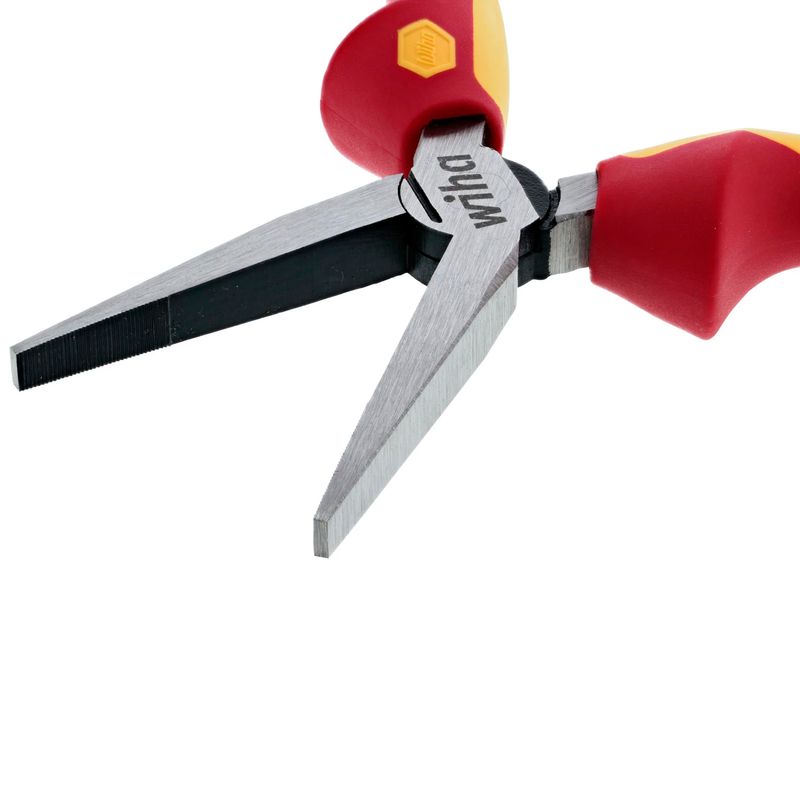 O Alicate Meia Cana Isolado 6.1/4'' Bico Reto Wiha é indicado para trabalhos em áreas energizadas até 1000V CA. Ideal para prender e dobrar fios e peças de chapa metálica em ângulo reto.