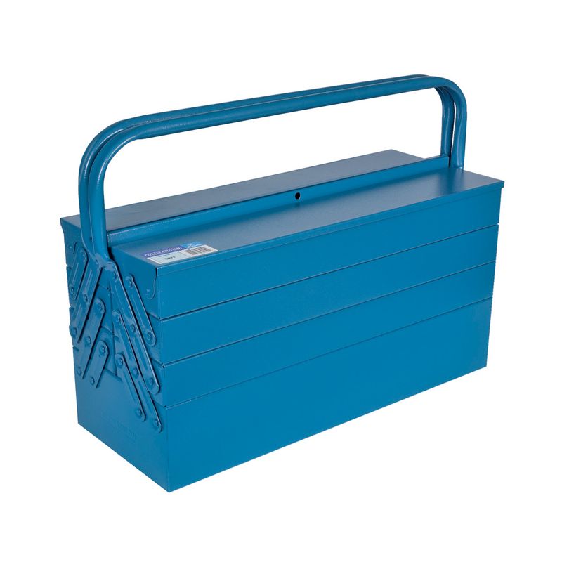 Espaçosa e com sete gavetas, a Caixa para Ferramentas tem capacidade de carregar até 25 quilos, possui porta cadeado e tem design clean..