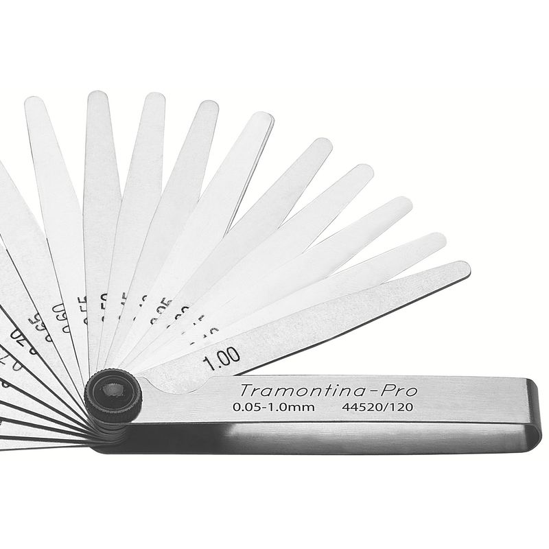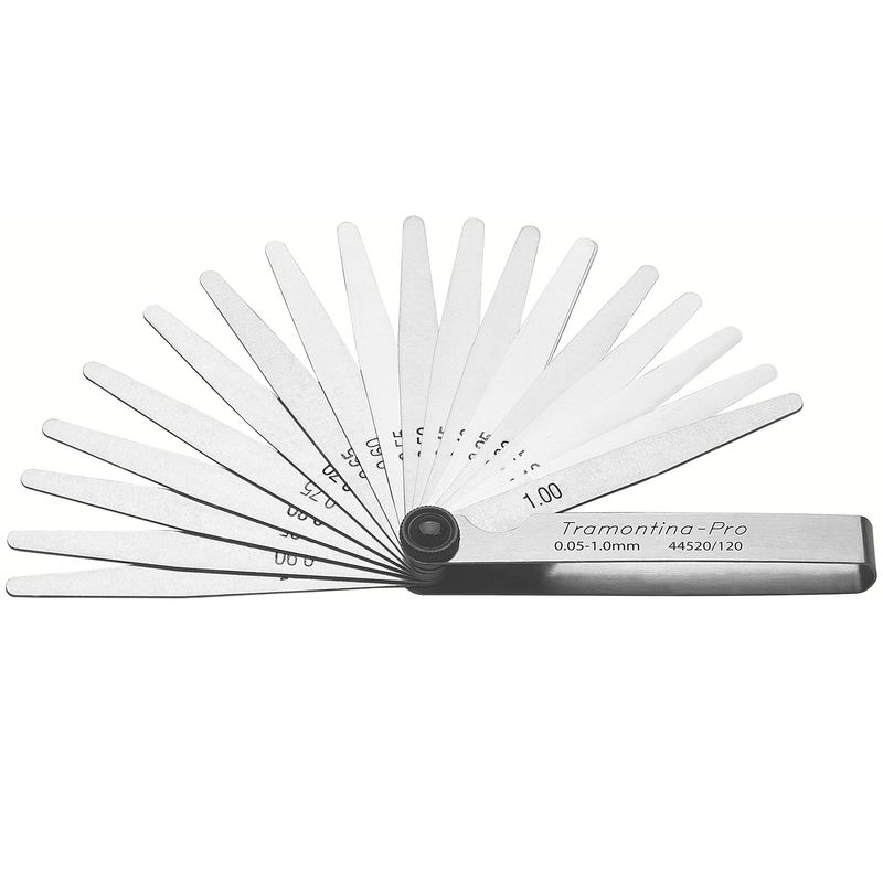 O Calibre de Folga com 20 Lâminas 0.05 a 1mm Tramontina Pro é ideal para ajustes de tuchos, velas, pontos do distribuidor, verificação de folgas em rolamentos e engrenagens, ajuste de pistões, anéis, pinos e calibração de canais estreitos.
