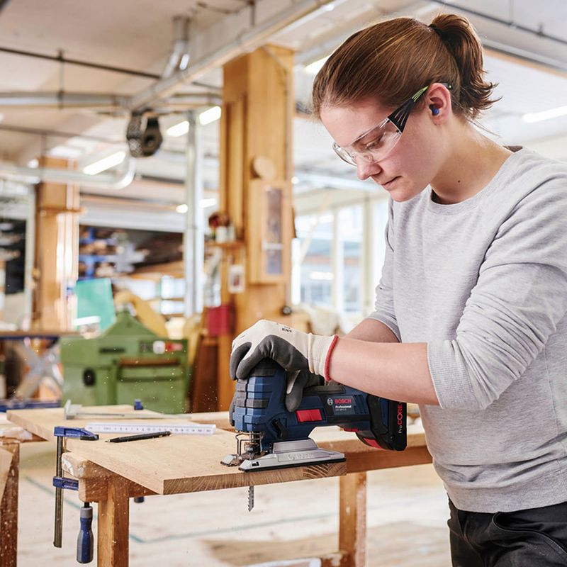 Permite fazer cortes de materiais em madeira com até 100 mm de espessura.