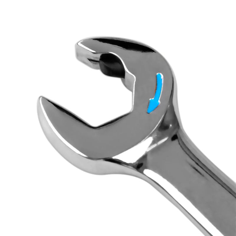 Seu lado estrela possui um mecanismo com catraca que permite realizar trabalhos com mais agilidade e facilidade do que uma chave estrela comum.