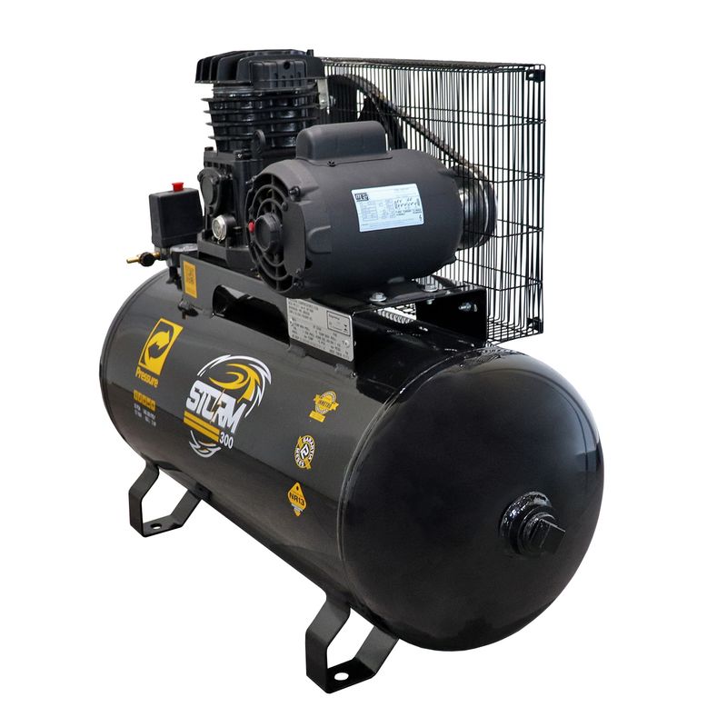 O Compressor tem amplo reservatório, armazenando até 100 litros. Ideal para ser usado por empresas que fazem uso de ar comprimido.