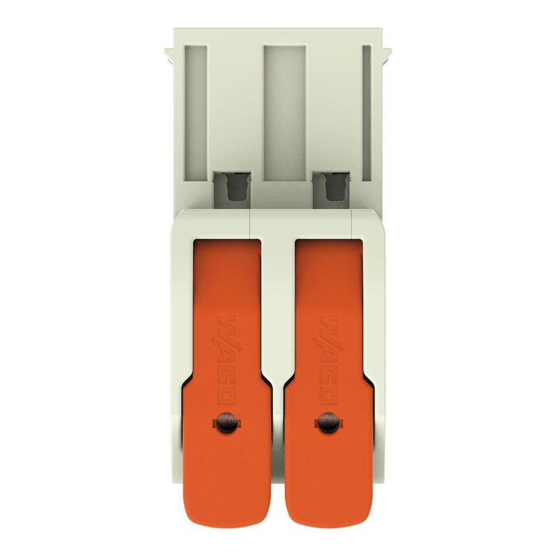 O Conector Macho de 1 Condutor para Fios 16mm com 2 Entradas Cage Clamp® Wago é ideal para conexões elétricas seguras em cabos de até 16mm², atendendo à norma DIN EN 61984.