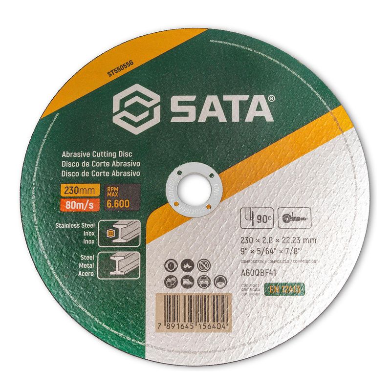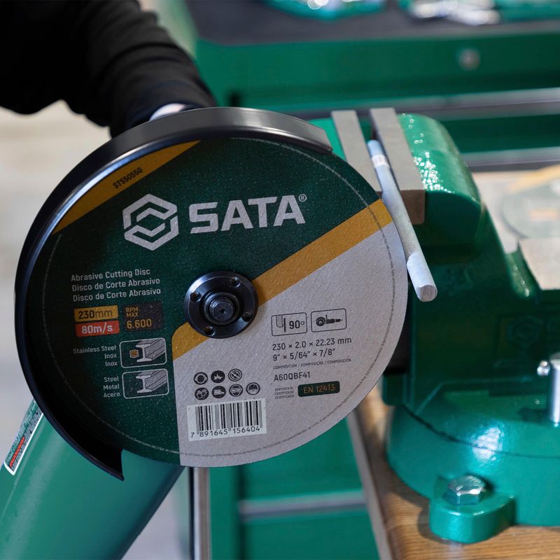 O Disco de Corte 9'' x 2 x 22mm Sata é ideal para cortes em aço e inox.
