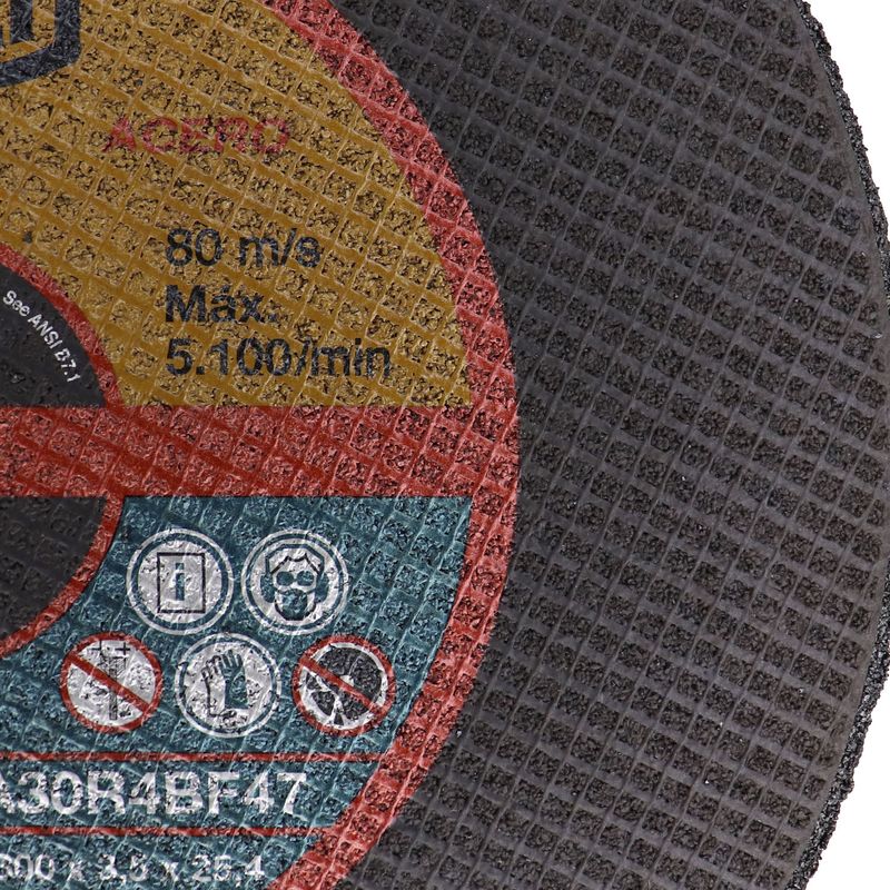 Destinados a cortar e desbastar aço inox e carbono, o disco tem 300 milímetros de diâmetro.