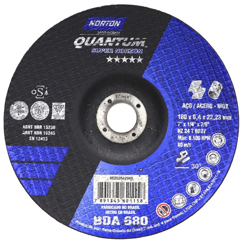 Fabricado com grãos Zirconados - Norzon, que proporcionam rendimento muito superior aos discos convencionais.