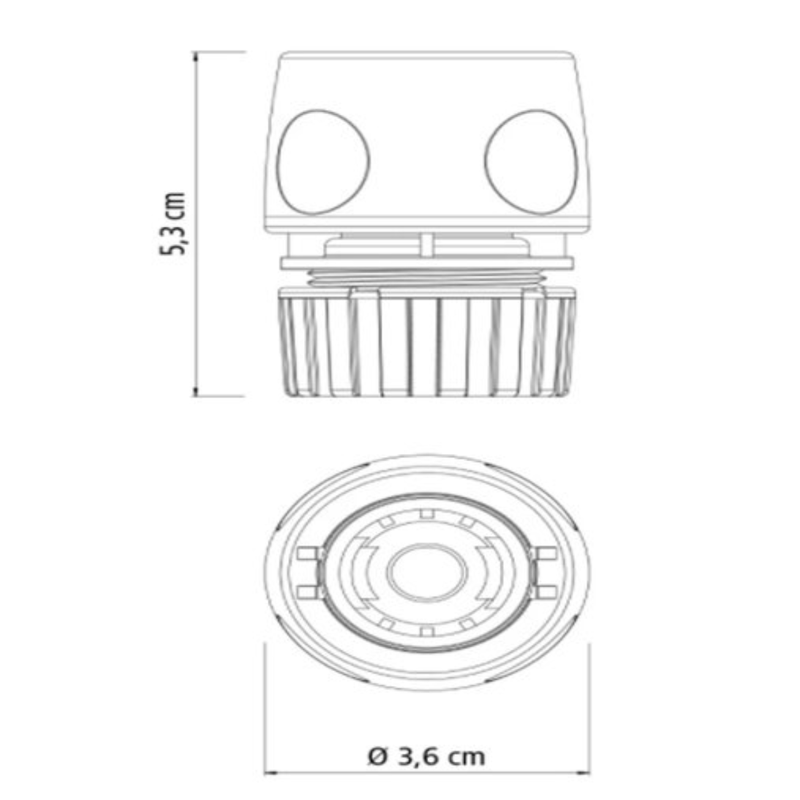 Possui conexão por sistema de fixação rosqueado à mangueira de 1/2" e conexão tipo click aos acessórios de irrigação, através de 2 garras.