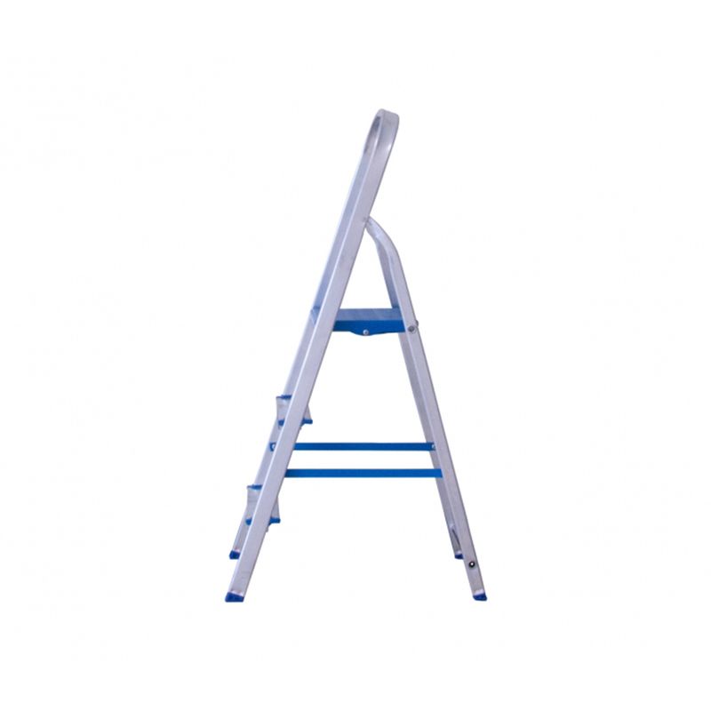 Possui degraus antiderrapantes e tem os pés fixados nos perfis de alumínio, evitando que escapem.