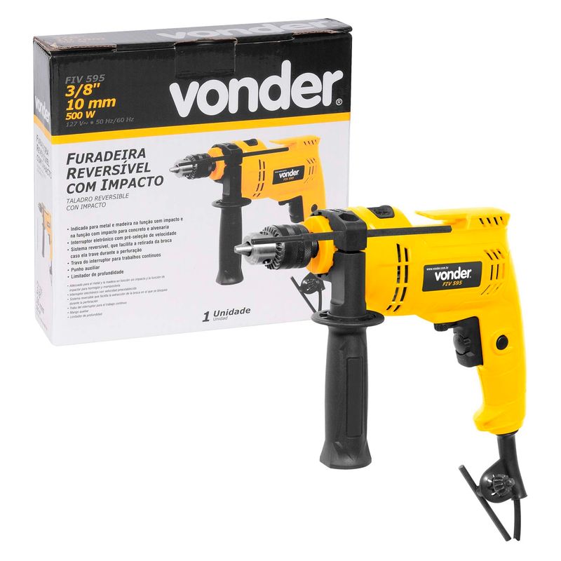 A Furadeira de Impacto 3/8'' 220V 500W FIV 595N Vonder é ideal para metal e madeira na função sem impacto e na função com impacto para concreto e alvenaria.