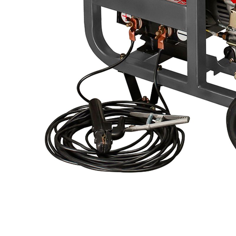É equipado com um motor de 10 cv e possui uma corrente de solda de 50 a 190A que varia conforme fator de uso.