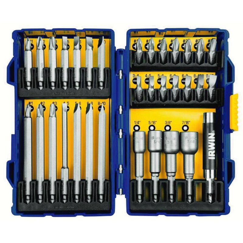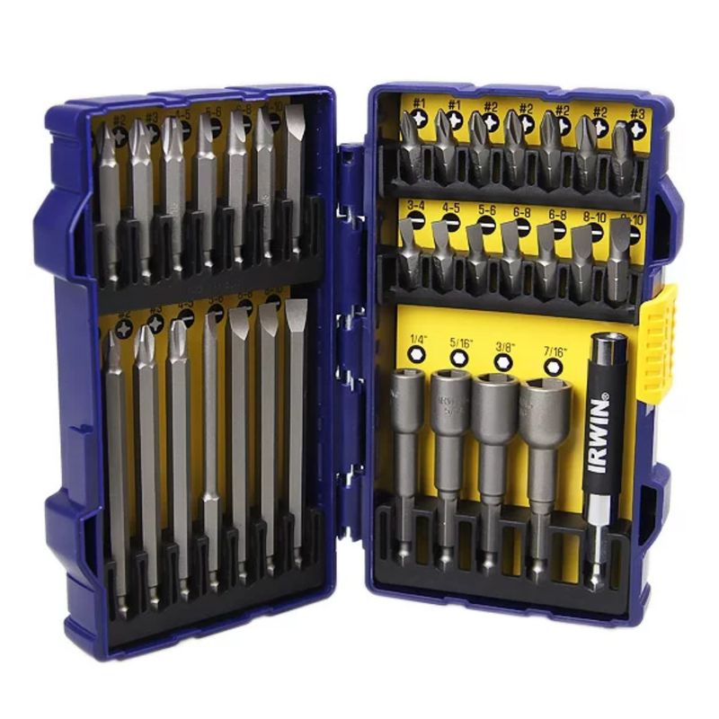 O Jogo de Bits IRWIN contém 33 peças desenvolvidas com aços da mais alta qualidade, para proporcionar alto desempenho e durabilidade aos profissionais que exigem ferramentas de alto padrão.