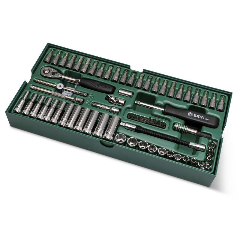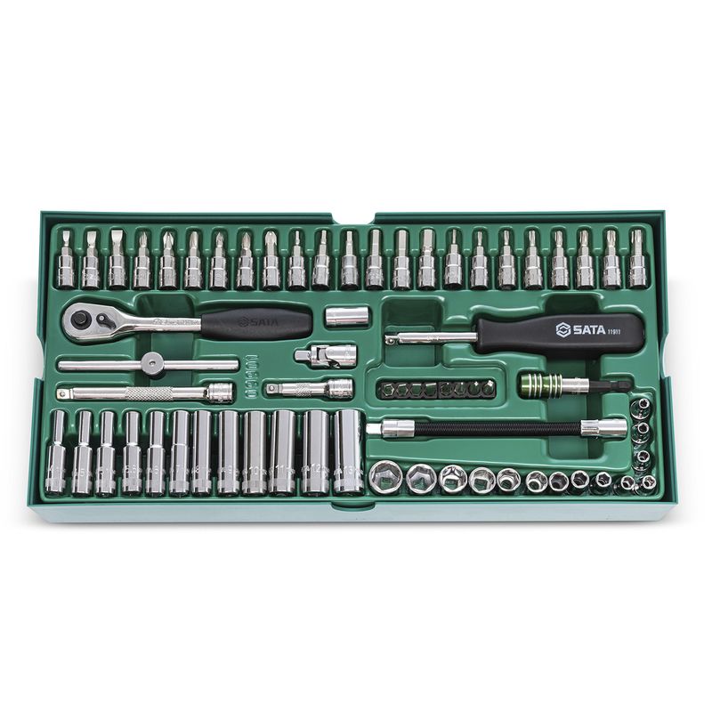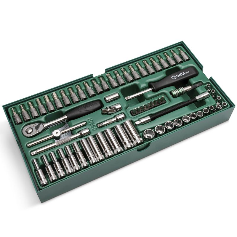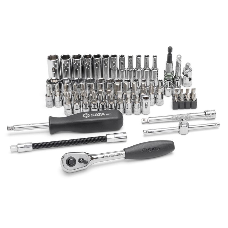 O Jogo de Bits e Soquetes 1/4" 66 Peças Sata é ideal para serviços mecânicos, manutenção industrial, automotiva e trabalhos de precisão que exigem agilidade na troca de soquetes, excelente alcance e operação com apenas uma mão. Fabricados em aço cromo-vanádio, asseguram durabilidade e resistência em uso contínuo.
