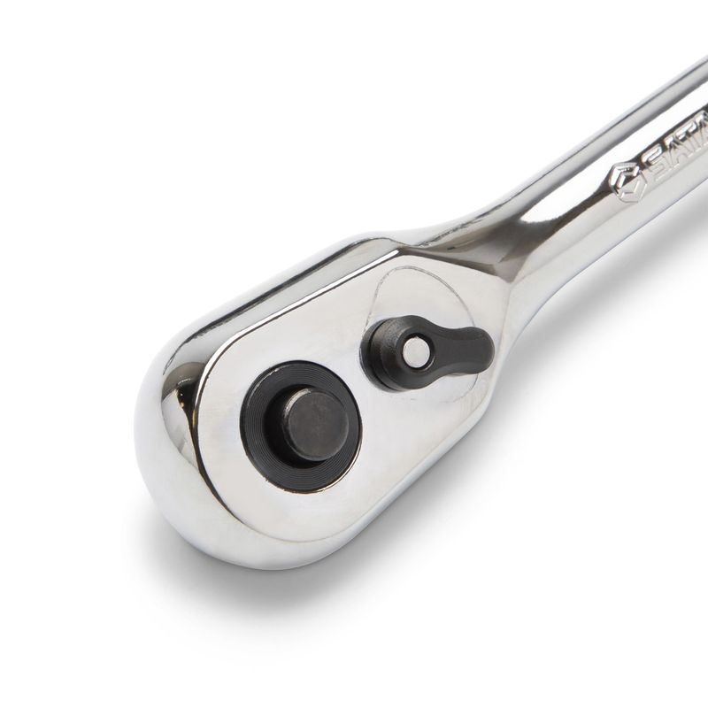 A catraca possui design de liberação rápida, permitindo remoção imediata do soquete, e conta com alavanca de reversão integrada, facilitando a mudança de direção sem retirar do fixador. Os soquetes utilizam perfil hexagonal com carga fora do canto, solução que reduz o arredondamento do fixador.