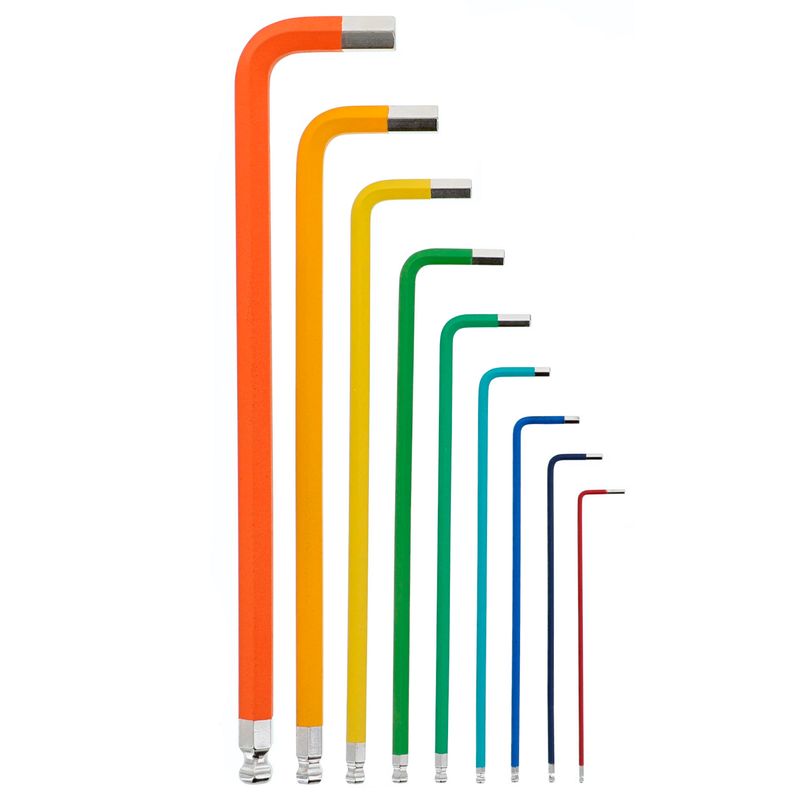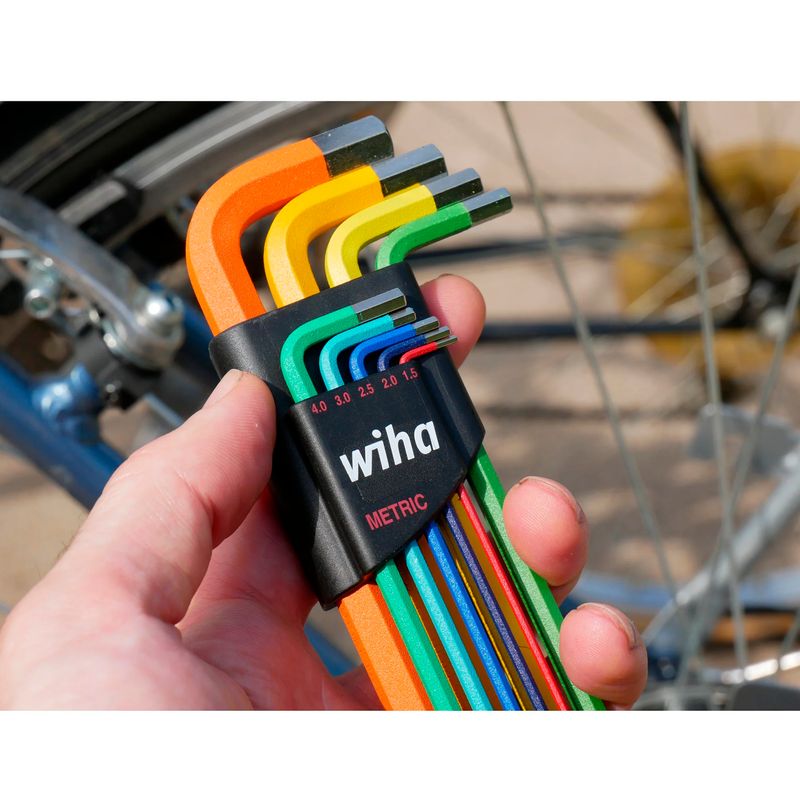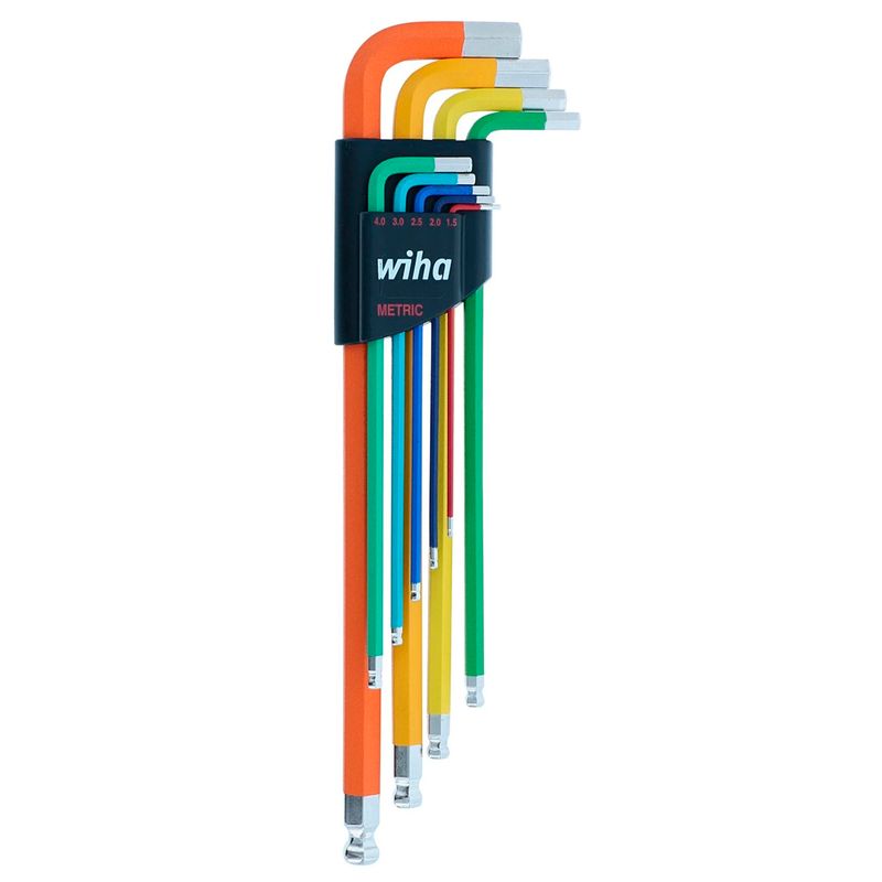 O Jogo de Chaves Allen Abauladas 1.5 a 10mm Colorido Wiha contém 9 peças ideais para apertar parafusos em locais de acesso limitado ou que exigem mais torque