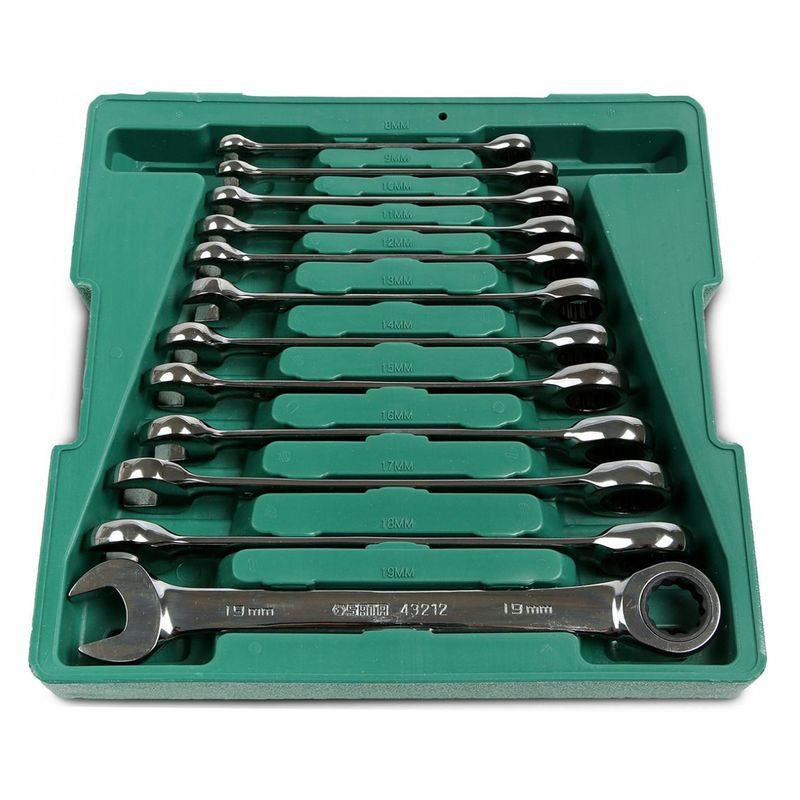 12 Chaves Combinadas com Catraca Sata: 8, 9, 10, 11, 12, 13, 14, 15, 16, 17, 18 e 19mm.