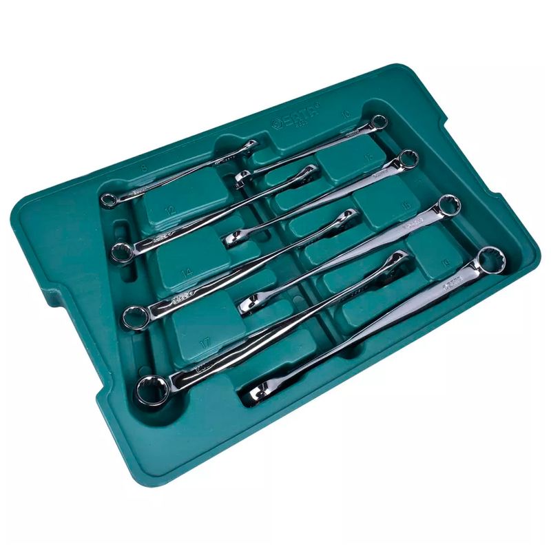 O Jogo de Chaves Combinadas Invertidas 8mm a 19mm Sata contém 8 peças ideais para afrouxar e apertar parafusos e porcas sextavadas e quadradas.