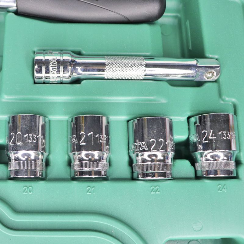O Jogo de Soquetes Sextavados 1/2'' 10mm a 24mm Sata é utilizado e recomendado por profissionais mecânicos automotivos, acompanha as principais ferramentas e acessórios mais utilizados para manutenção, montagem, desmontagem e reparos de grandes ou pequenos trabalhos.