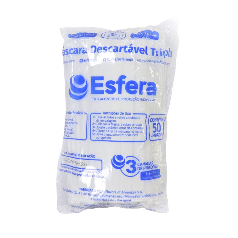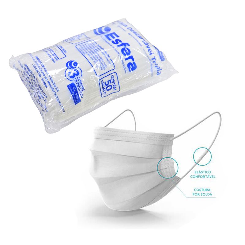 1 Kit com 50 Máscaras Descartáveis PROTECTME.