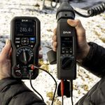Acompanha o multímetro FLIR DM286 IGM, com medições precisas, conectividade Bluetooth e integração ao app METERLiNK para relatórios e compartilhamento. O visor LCD colorido exibe claramente o status do carregador.