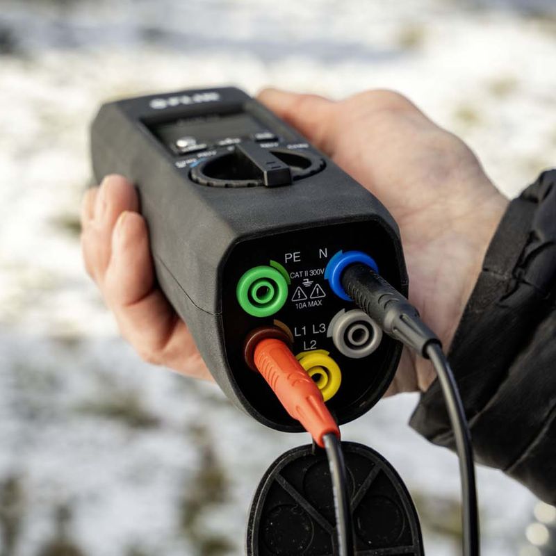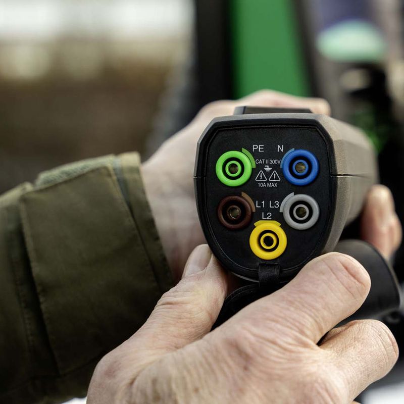 Permite testar o aterramento de proteção, a fiação elétrica e o funcionamento do dispositivo de corrente residual (RCD). Realiza medições da corrente máxima de saída, além da tensão e frequência de carregamento, garantindo a segurança elétrica e a eficiência do sistema.
