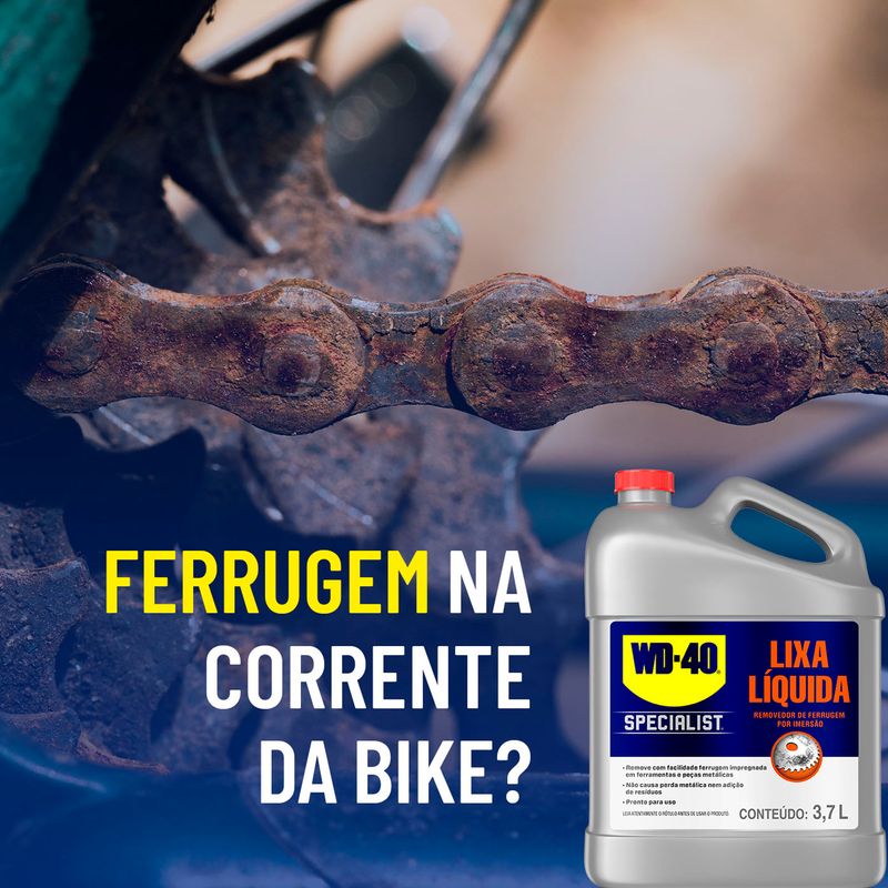 A Lixa Líquida 3.7L Specialist WD-40 recupera peças metálicas e remove ferrugem com segurança.