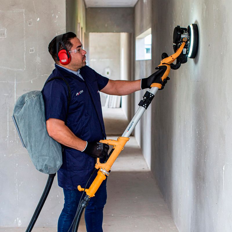 Possui braço extensível capaz de chegar em até 1.9m e lixadeira articulável, permitindo melhores posições de trabalho em diversos lugares.
