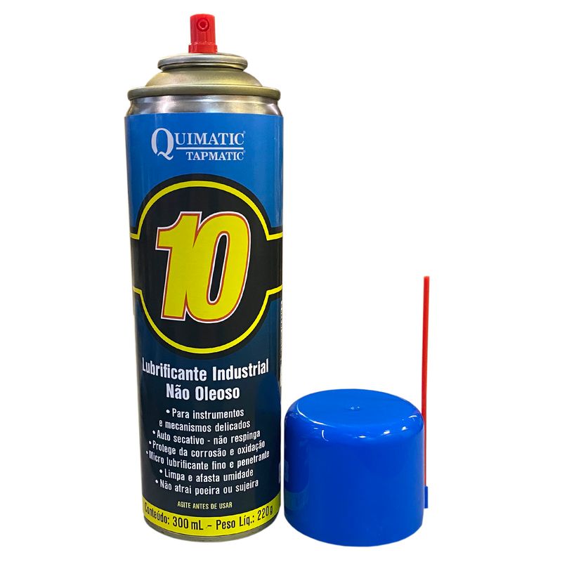 O Lubrificante Industrial Não Oleoso 300ml Quimatic 10 Aerossol Tapmatic é ideal para mecanismos delicados, como instrumentos de medição, fechaduras, cadeados, ferramentas, dobradiças, armas, mecanismos de precisão, componentes eletroeletrônicos, peças oxidadas a preto, entre outros.