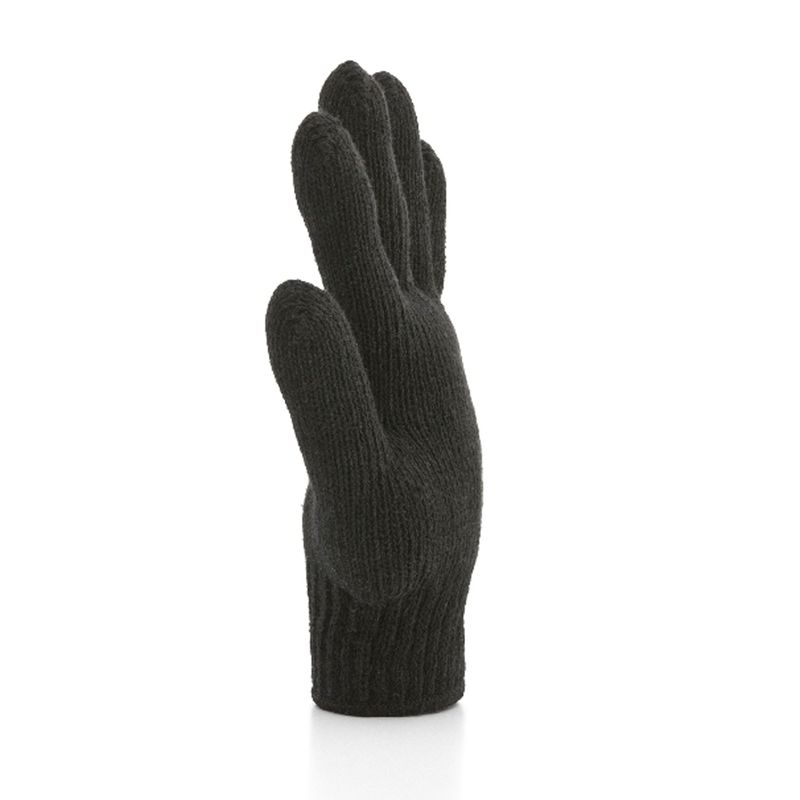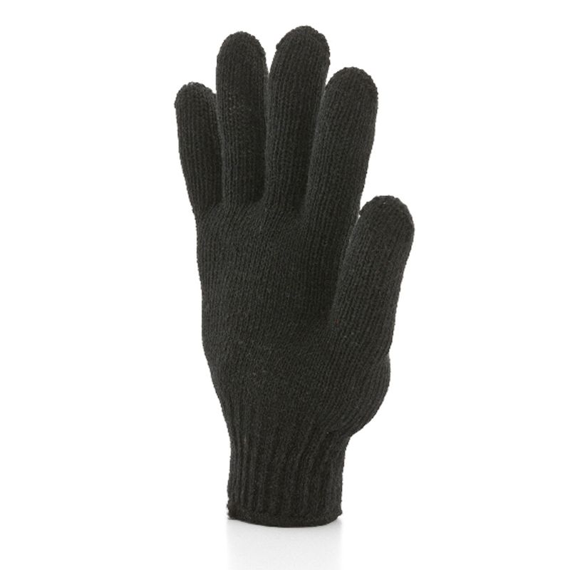 Luva de segurança confeccionada em fibras naturais e fibras sintéticas na cor preta, com punho com inserção de fibras elásticas e acabamento em fibras sintéticas.