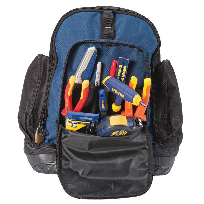 A Mochila para Ferramentas Base Emborrachada 14'' com 34 Bolsos IRWIN possui capacidade de carga de 13kg.