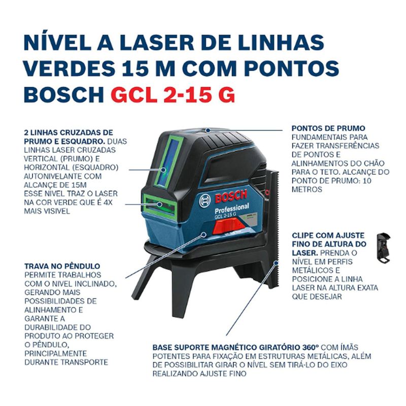 01 Nível a Laser de Linhas Verdes 15m com Pontos GCL 2-15 G Bosch;
