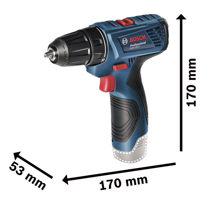 A Parafusadeira e Furadeira 12V GSR 120-LI Bosch é super compacta e leve, e possui maior vida útil devido ao sistema ECP que protege eletronicamente as células da bateria.