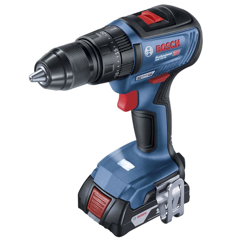 A Parafusadeira e Furadeira de Impacto 18V GSB 18V-50 Bosch é ideal para perfuração em madeira, metal e alvenaria.
