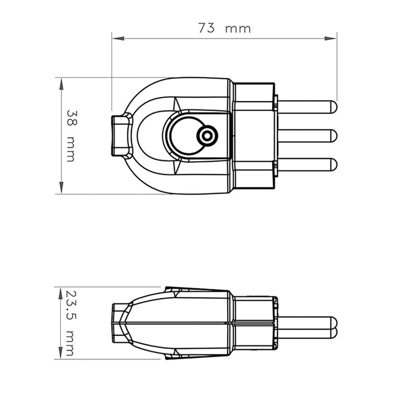 O Plug Macho Reto 10A 2P+T Preto Tramontina Eletrik é fabricado em termoplástico antichama, com componentes condutores e pino maciço em liga de cobre. Materiais que proporcionam alta qualidade e segurança.