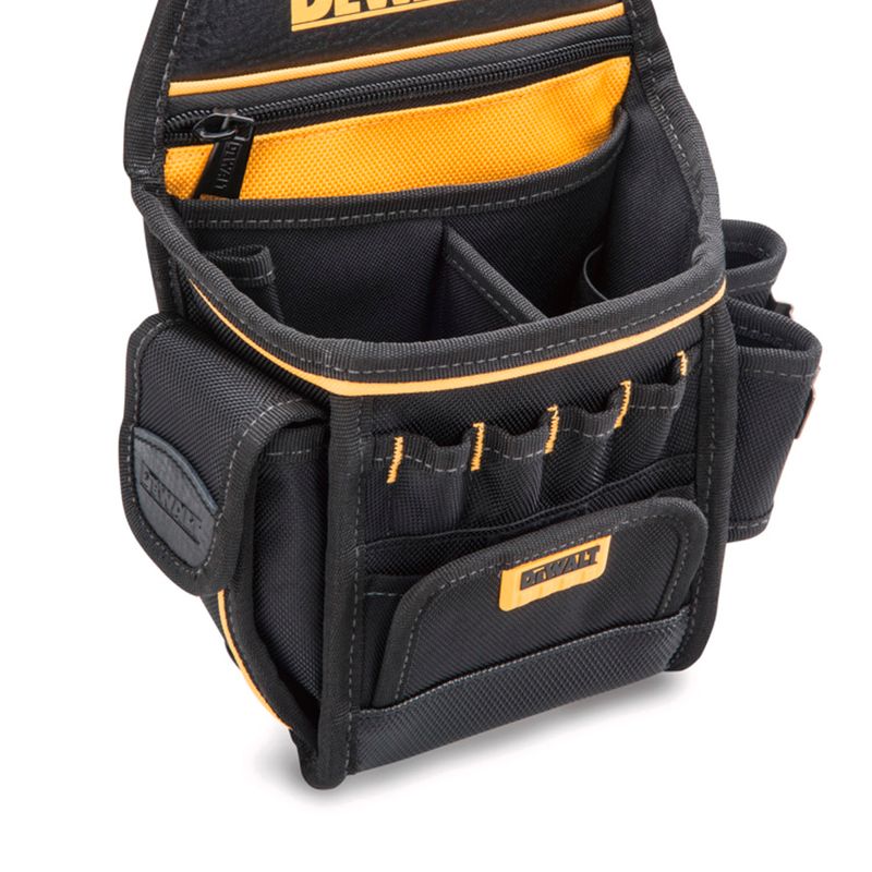O Porta Ferramentas para Cinto Dewalt é compacto e portátil para mobilidade no lugar de trabalho, possuindo compartimento com zíper para manter as ferramentas seguras.