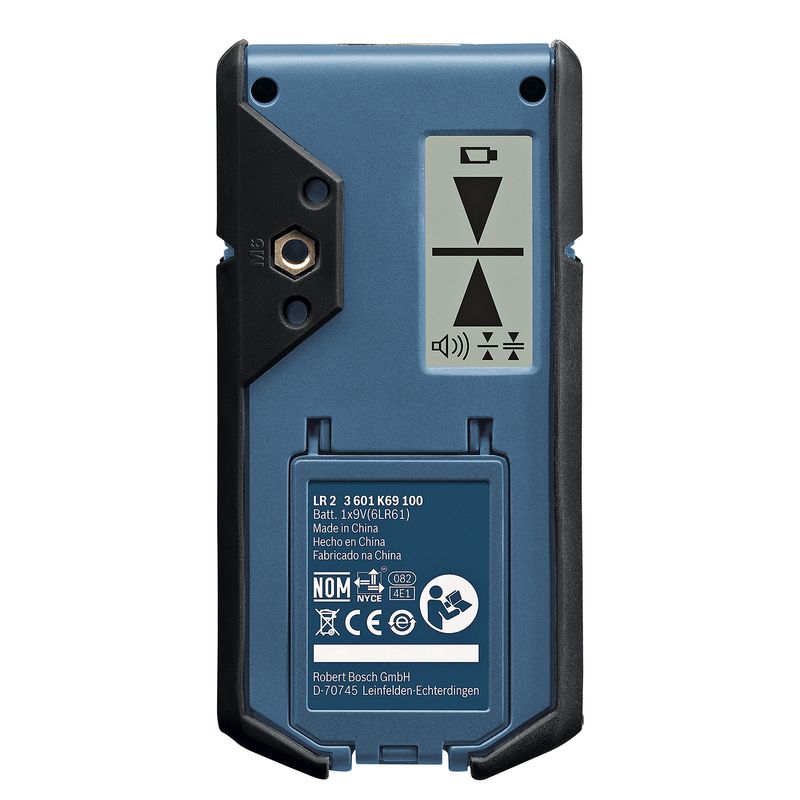 O Receptor para Níveis LR 2 Professional Bosch foi desenvolvido para trabalhar em conjunto com o nivelador de linhas da Bosch GLL 3-50, permitindo assim trabalhos em ambientes externos e com grande incidência de luz, mesmo onde você não possa visualizar o laser, garantindo assim exatidão nos serviços realizados.