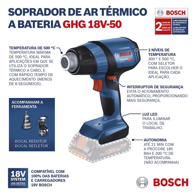 01 Soprador Térmico 18V GHG 18V-50 Bosch;