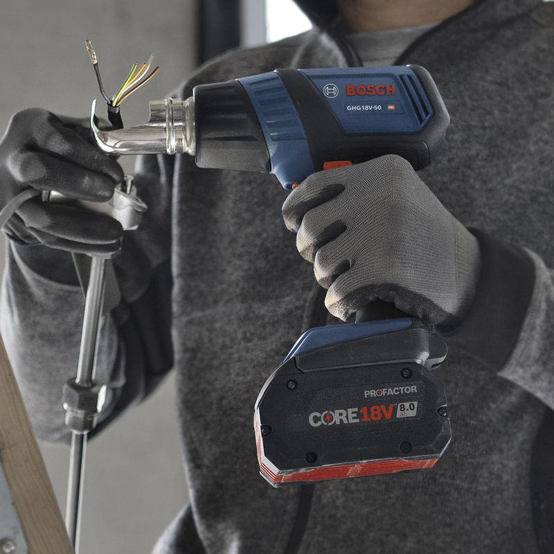 O Soprador Térmico 18V GHG 18V-50 Bosch é ideal para selagem de cabos elétricos, empacotamento, insulfim, remoção de adesivos, aplicações de fluxo de ar concentrado, dobragem e moldagem de tubos, moldagem de couro e plástico.
