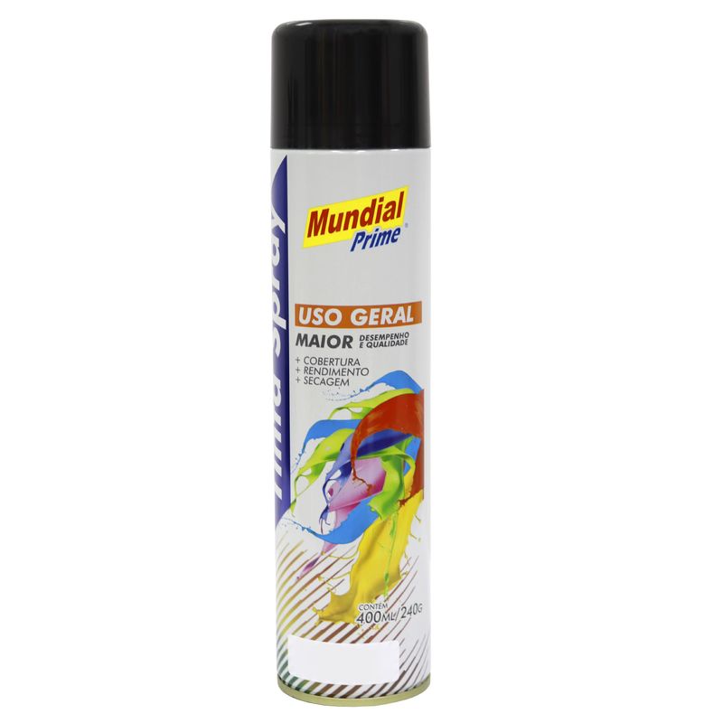 01 TINTA SPRAY PRETO BRILHANTE 400ML - MUNDIAL PRIME