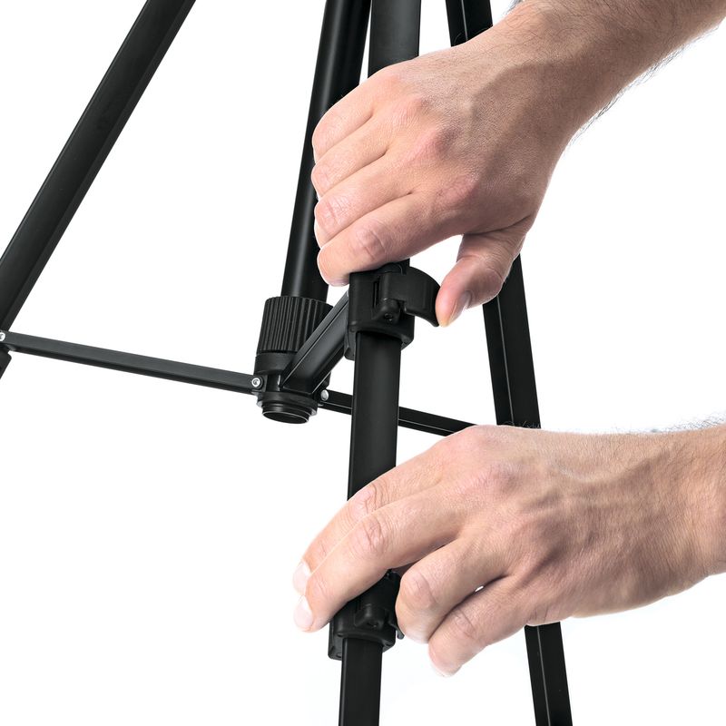 Adaptável às várias situações de uso profissional: com ajuste de altura de 55 cm a 157 cm, com articulações para o ajuste à posição desejada.
